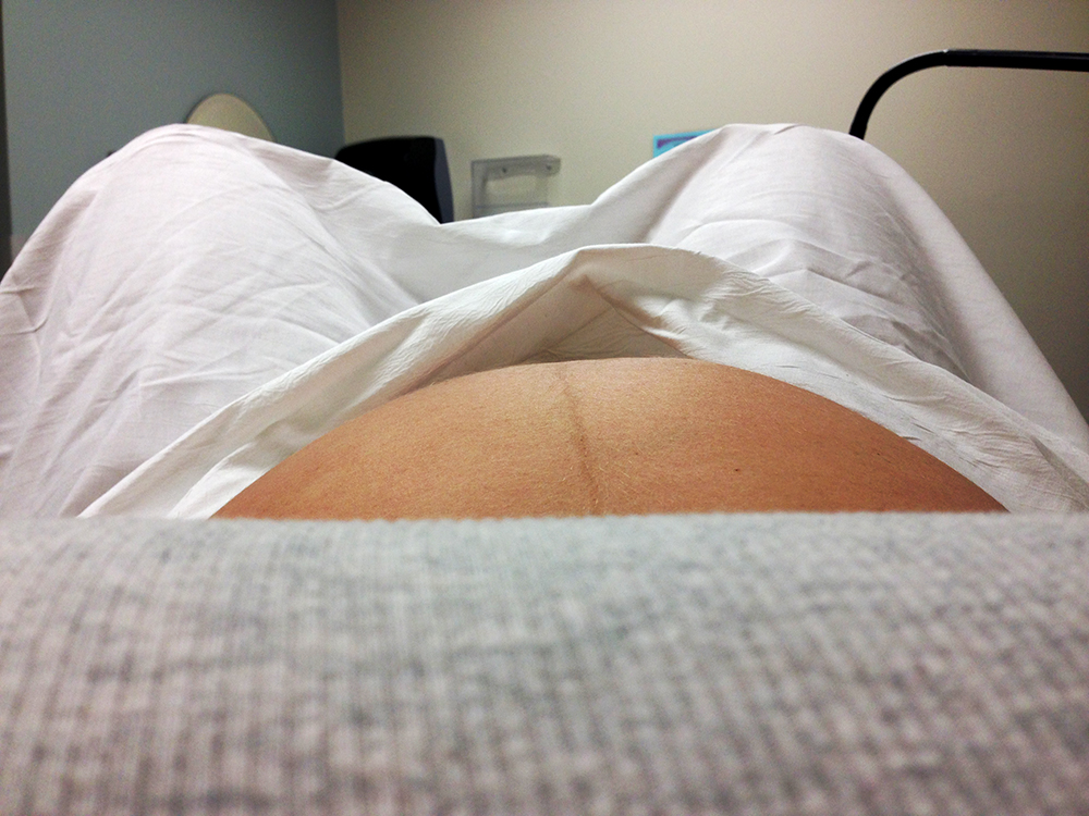 One of the last shots of my baby bump, taken right before my doctor came in to examine me.