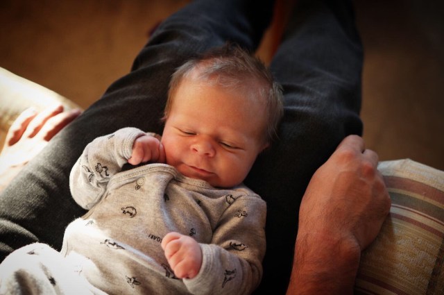That went on for about 10 minutes. Then the nurses said that they could see the baby, but it was stuck under my pelvic bone. So they got the vacuum and stuck the suction cup on the baby’s head. Then they told me to push again. I bore down with everything I had and pushed, and Dave held my hand and started cheering me on along with everyone else. A minute or so later, the baby’s head popped out. It took one more push to get the body out, and then, at 1 am, it was over.