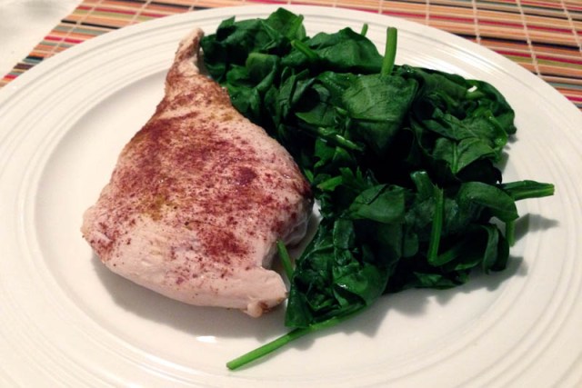 Dinner – curry chicken and spinach (180 cals)