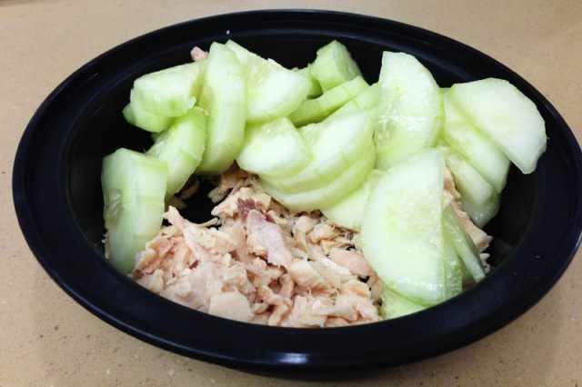 Lunch – a can of tuna and half a large cucumber (172 cals)