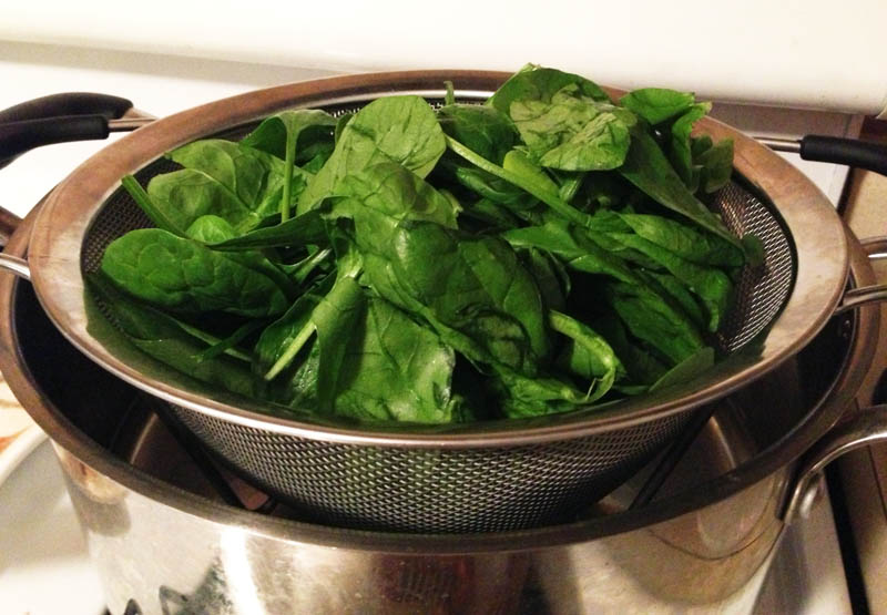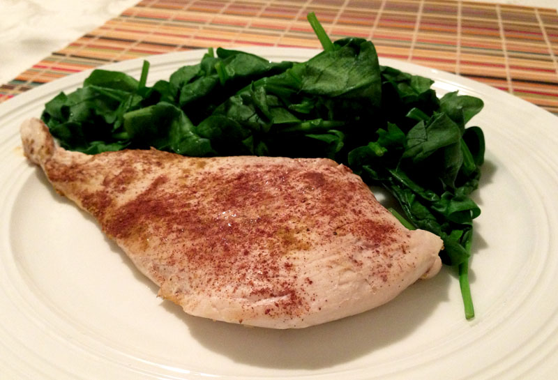 4. While the chicken is cooking, prepare your side dish. For this meal I chose to steam some spinach.