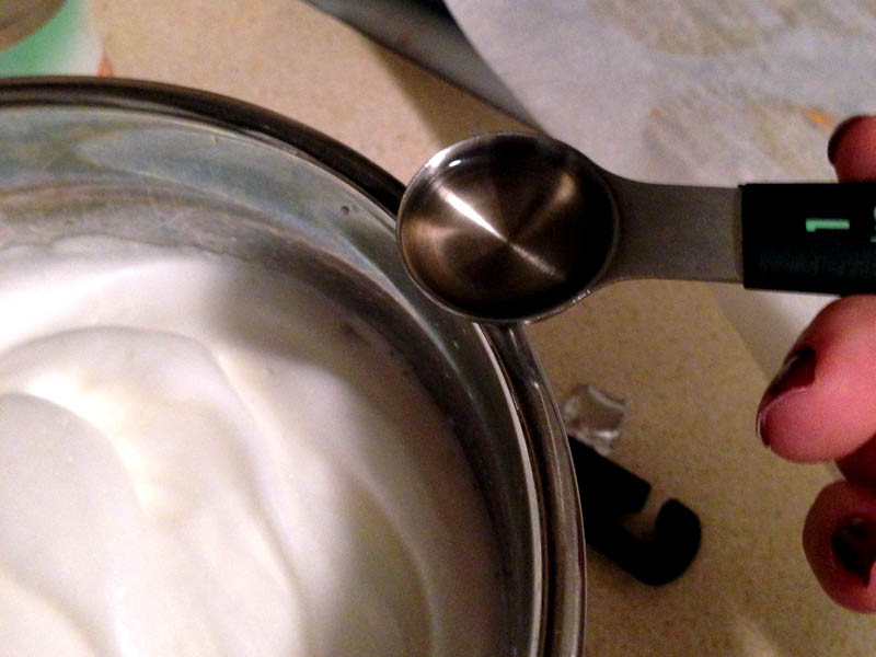 7. Add the coconut extract and continue to beat. I try to drizzle it down the side of the bowl, as opposed to just pouring it in the center, because egg whites are VERY sensitive!
