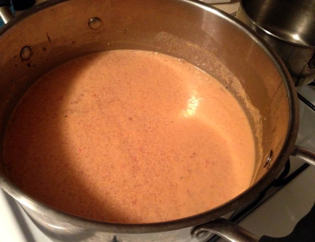 3. Add it to the pot along with the crab and spices and let it cook for maybe a half hour on a not-too-high flame.