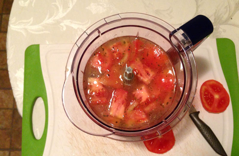 2. Puree the tomato and the broth.