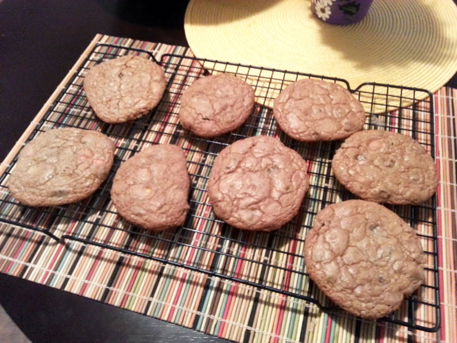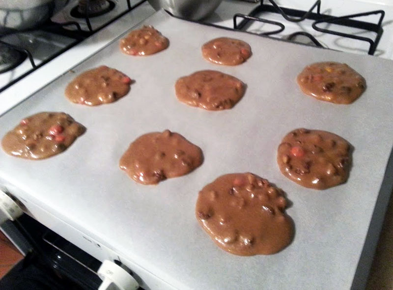 Healthy homemade cookies (whole wheat flour and coconut oil) with some not-so-healthy additions (chocolate chips, walnuts and Reese’s Pieces)