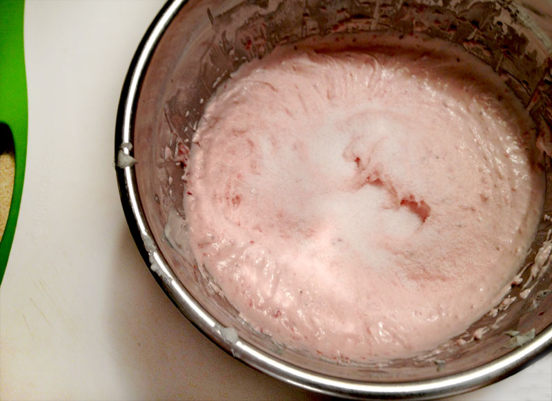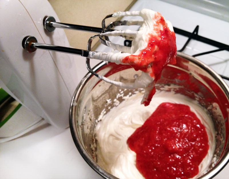 2. Mix in the strawberry puree.