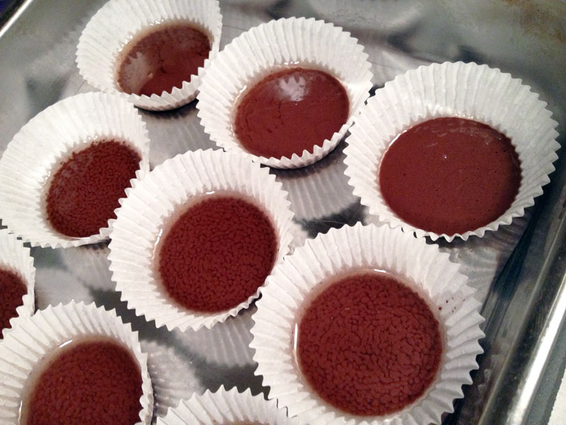 I know, I know, it doesn’t look appetizing. Stupid oil separation. But again, it’s no big deal – I simply poured some more of the chocolate mixture over that first hardened layer, and it made them much more appealing!