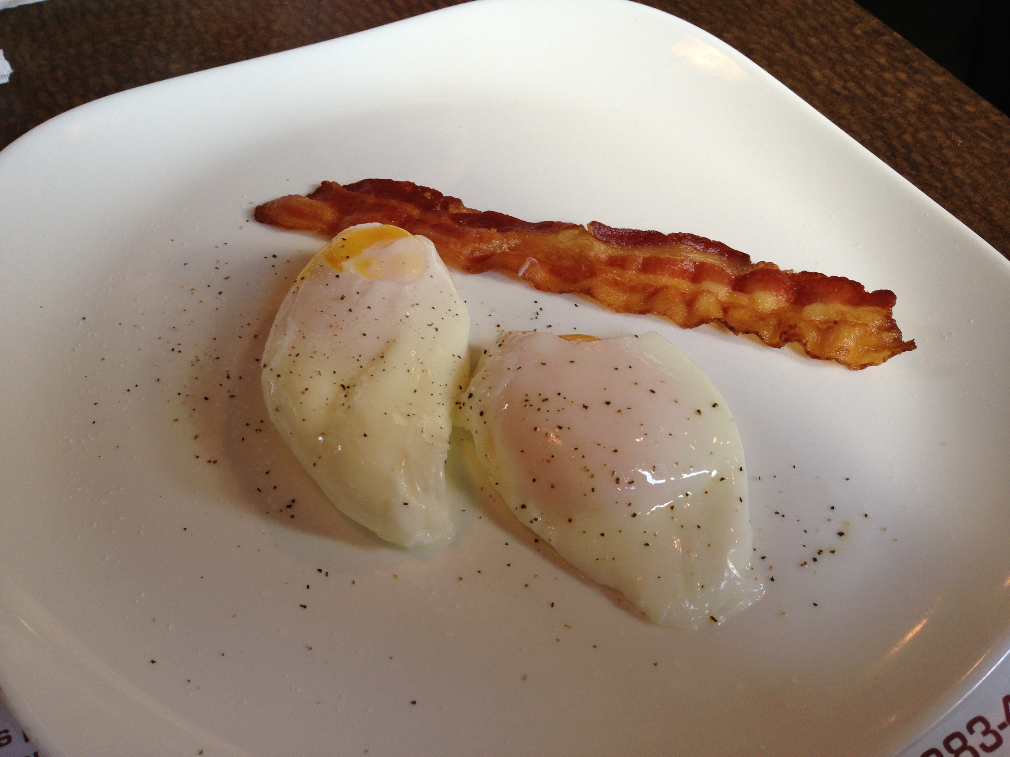 But now I’m on a diet, and I am actually very focused and motivated. So there’s definitely no bagel for me today. Instead, I ordered two poached eggs and stole a piece of my aunt’s bacon. Not quite as good as a bagel and lox, but I at least I stuck to my diet. 🙂