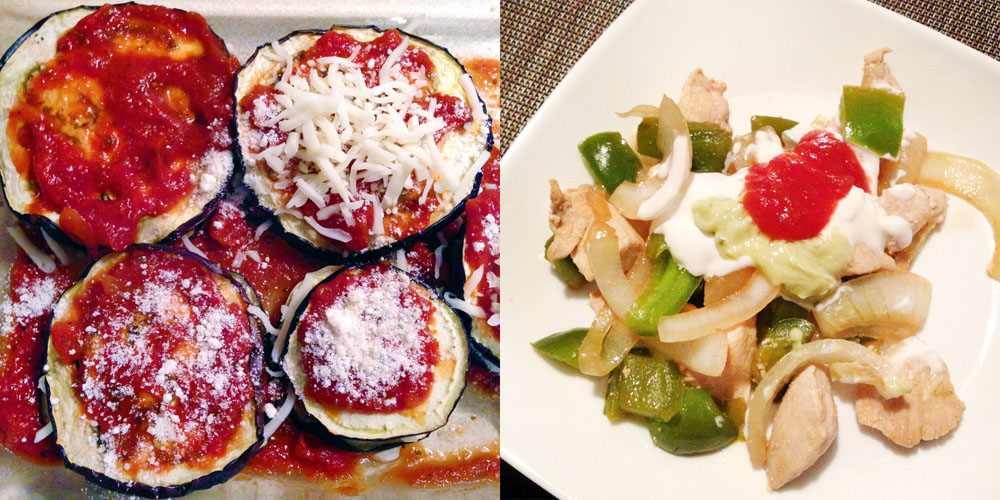 Food-wise I am also doing well. I haven’t strayed from my diet at all, although there were a few “questionable” meals, like the baked eggplant parm I ate for lunch TWICE this week or the sour cream and guacamole dip I added to my chicken and vegetable fajitas for dinner one night (no tortilla, of course). Even though I said I was going to cut out cheese and sour cream, I also said I wasn’t going to waste anything in my fridge. But it’s all almost gone now; there are just one or two more meals left.